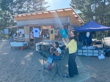 ネストウエストガーデン土佐にお宿を取って入野の浜で遊びます。GWの名物は、Tシャツアート展。「砂浜で洗濯もん干してるだけやんけ〜!」な