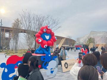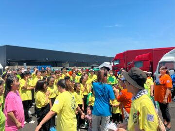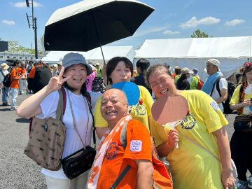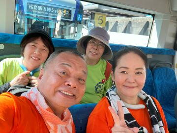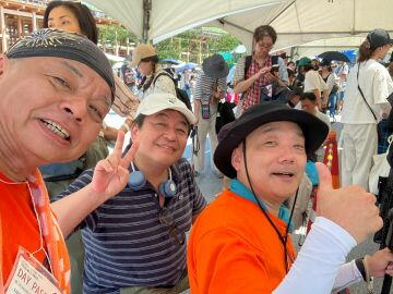 当日は、総勢150人程度、胸に「万博でやってやるぜ」のエンブレムが付いたTシャツを着て団体行動。うだるような暑さの中、たった15分です