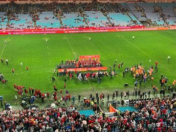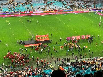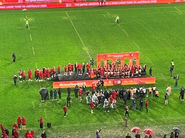 終了間際にライオンズがトライを決めるもフルタイム。結果は、22-12で、ワラビーズのシリーズ初勝利でゲームオーバー。イトジェキャプテンを囲