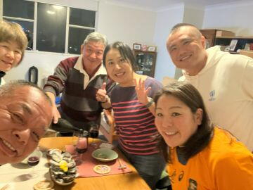 また、ラグビー観戦の翌日は、ラグビールメンバーを集めてオイスターと寄せ鍋のパーティーです。シェフが本業のヒロさんの腕の見せ所という