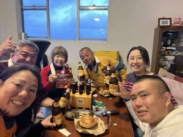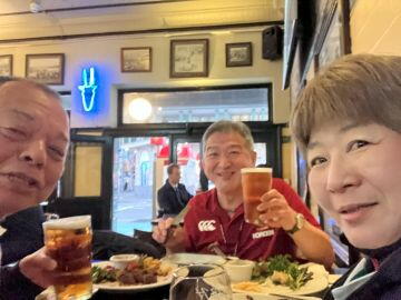 当日は雨、京都の元祖スクールウォーズの中華料理店・清華園でつながるメンバーが集まってラグビールで乾杯です。アッカースタジアムに移