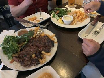 のパブへ。ビール飲んで、オージービーフのステーキ、フィッシュ&チップス。 ![]() ![]() ![]()