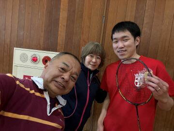 す。大会ではキャプテンの「パシリ」のお役目を勤め上げ、その功績によりMVPで二島Tシャツを持って帰りました。バドスキルも上々、社会人チー ムにも加入して、お代官様の跡継ぎとして二島をお任せしたいメンバーの一人でしたが、家庭の事情というか、これからの人生の大きな転機とし て、九州・小倉に引っ越すことになりました。